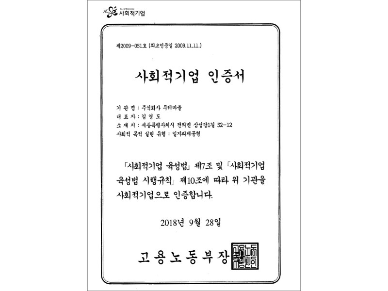 회사명: (주)두레마을 | 대표이사: 김 영 도