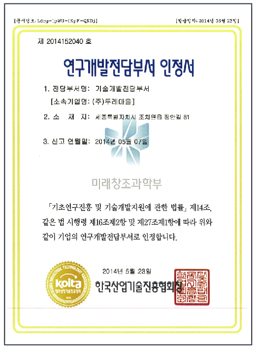 연구개발 전담부서 인증서 페이지 정보 작성자 관리자 작성일18-11-17 00:25 조회1,302회 댓글0건 관련링크 이전글 목록 본문 연구개발 전담부서 인증서 댓글목록 등록된 댓글이 없습니다. 이전글 목록