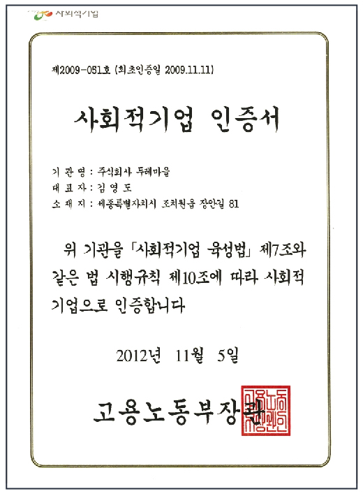 사회적 기업 인증서 페이지 정보 작성자 관리자 작성일18-11-17 00:25 조회1,189회 댓글0건 관련링크 이전글 다음글 목록 본문 사회적 기업 인증서 댓글목록 등록된 댓글이 없습니다. 이전글 다음글 목록