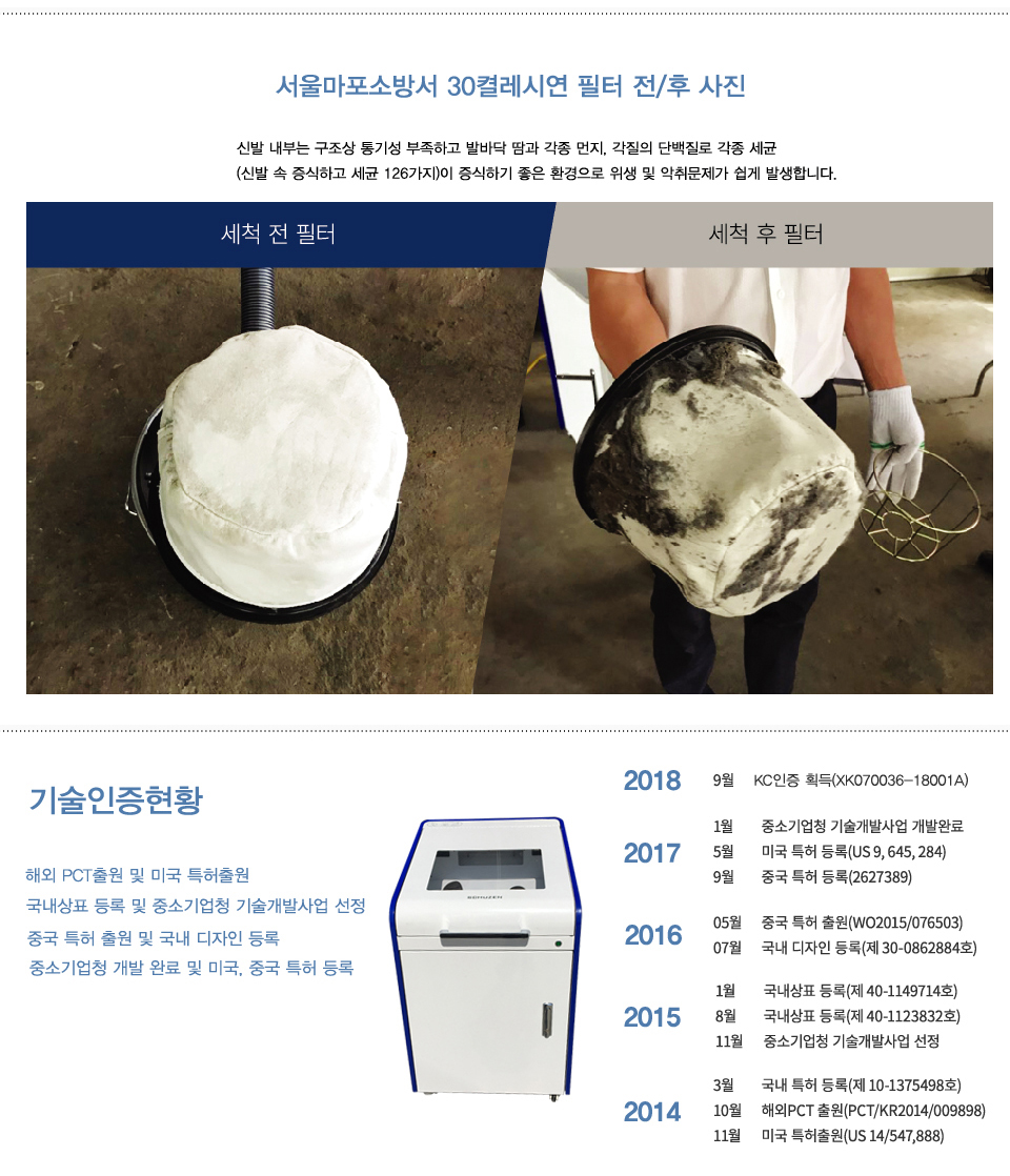 슈젠은 물세척이 불가능한 신발 내부의 세척과 살균 및 탈취 기능을 갖춘 한국, 미국, 중국 특허 등록을 한 신제품 신기술 입니다.